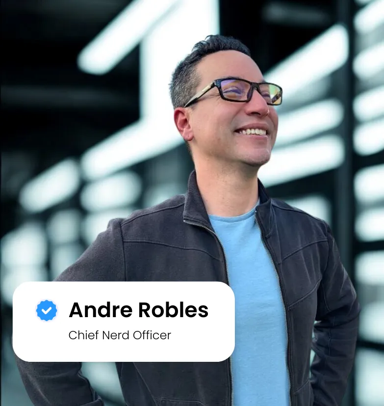 I’m Andre Robles, Chief Nerd Officer. I come from a background in marketing and advertising, and I spent my summers in high school working as an electrician, later doing contracting work in college. I understand the trades and the tech.